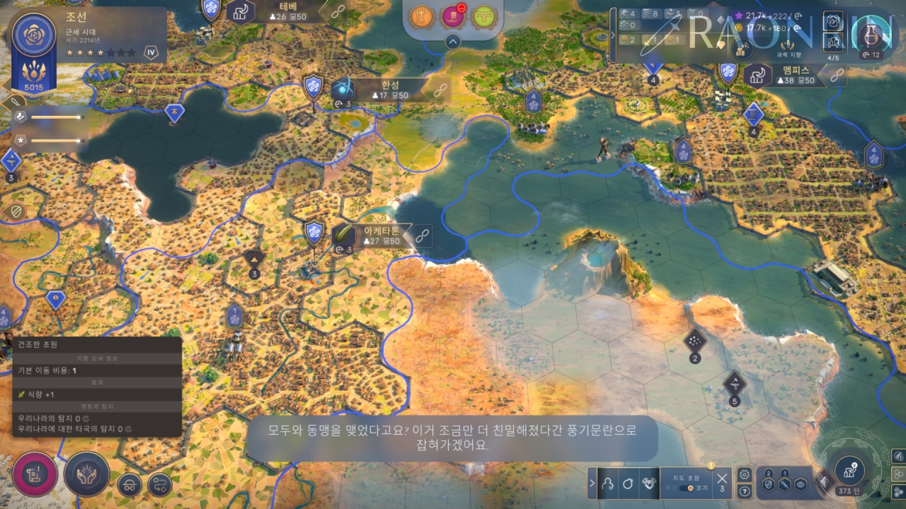 I remember seeing a humor post before saying that Koreans playing Civilization always deploy their armies on the borders, end up getting war declared on them, and ruin their diplomacy – and that’s exactly what I did. Come to think of it, even when I lowered the Civilization difficulty, I was always getting invaded and getting into diplomatic fights and failing, so this must have been why. So while reading that, I was thinking “Then what are you supposed to do with your army? You need to build military to avoid getting invaded, right?” As I kept reading, it said you’re supposed to keep your army in the capital… Oh… I see… I naturally thought military units were supposed to be on the borders. So whenever I got money, I’d immediately build armies and station them on the borders… I did the same thing in Humankind ㅋㅋㅋ Everyone just kept quiet because my country was so strong, but they must have had a lot of complaints ㅋㅋㅋ