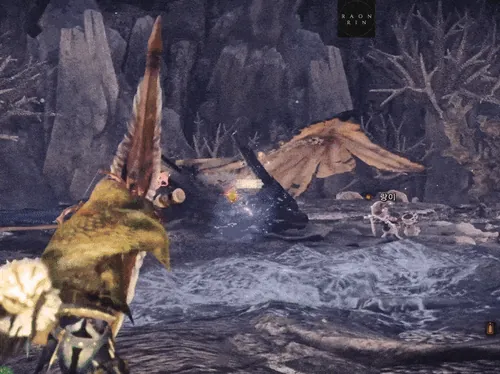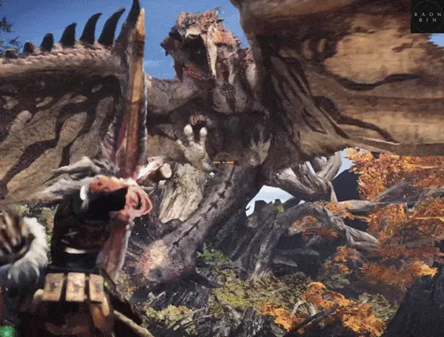After fighting for a while, I saw Rathalos making the fire-breathing motion so I dodged away,