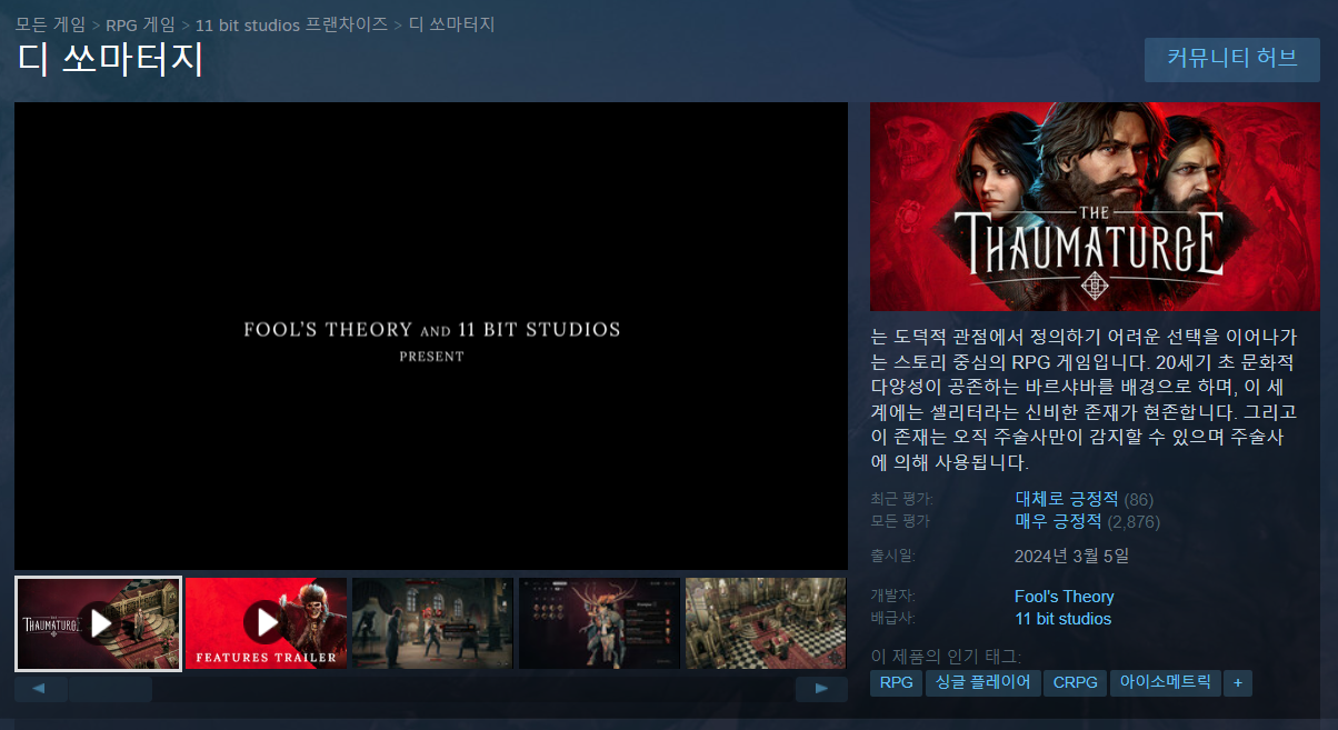 The reason I decided to play this game was because it was included in Humble Bundle Choice. I was curious about Eiyuden Chronicle: Hundred Heroes, which was also included in the Choice bundle, so I bought the bundle. However, since The Thaumaturge had decent Steam reviews, I ended up trying this one first.